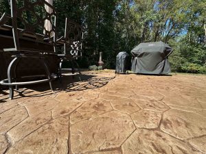 If your stamped concrete has color issues, uneven tones, or just looks tired and worn, you don’t have to tear it out and start over. We use a polymer-modified cementitious overlay system that bonds directly to your existing stamped concrete, corrects the color, and leaves your original pattern completely intact. We clean and prep the surface, apply the overlay by roller, add an antiquing agent to bring out the depth of the texture, and finish it off with a protective sealer. The result looks like a brand new slab.
