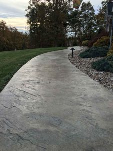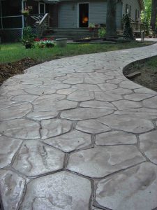 Stamped concrete is perfect for installation of new walkways, driveways or patios. If you are doing major renovations to your existing driveway, walkway, patio or carport; then this is a great addition to make. As the concrete is begining to set, we’ll come in and stamp your pattern in. Once it fully cures, we’ll come back stain and seal it.