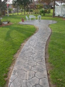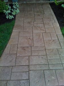 Stamped concrete is perfect for installation of new walkways, driveways or patios. If you are doing major renovations to your existing driveway, walkway, patio or carport; then this is a great addition to make. As the concrete is begining to set, we’ll come in and stamp your pattern in. Once it fully cures, we’ll come back stain and seal it.