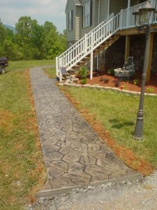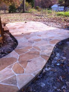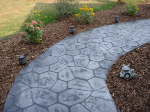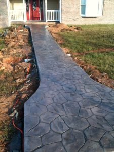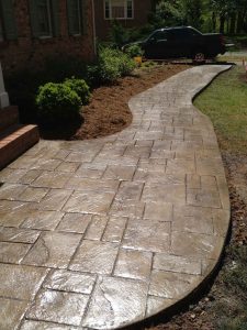 Stamped concrete is perfect for installation of new walkways, driveways or patios. If you are doing major renovations to your existing driveway, walkway, patio or carport; then this is a great addition to make. As the concrete is begining to set, we’ll come in and stamp your pattern in. Once it fully cures, we’ll come back stain and seal it.