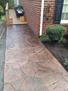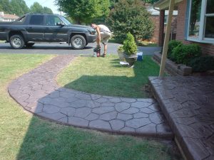 Stamped concrete is perfect for installation of new walkways, driveways or patios. If you are doing major renovations to your existing driveway, walkway, patio or carport; then this is a great addition to make. As the concrete is begining to set, we’ll come in and stamp your pattern in. Once it fully cures, we’ll come back stain and seal it.