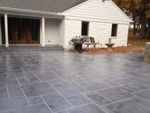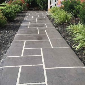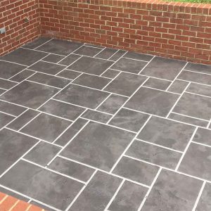 Resurfacing a concrete patio with a faux slate overlay is an affordable way to refresh worn concrete. After cleaning and repairing the slab, a cement overlay is applied, textured, and colored to resemble natural stone. Sealed for durability, the result is a stylish, long-lasting surface that transforms an ordinary patio into an elegant outdoor feature.